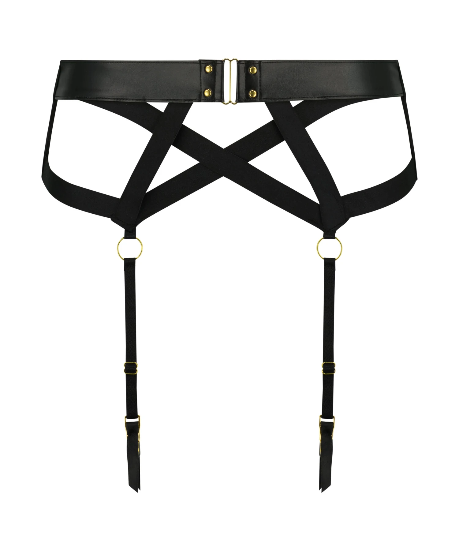 Mit diesen sexy Strapsen vollendest du deinen Look! Sie haben schöne Riemchen und goldene Details. Mit passenden Artikeln kombinierbar! Teil der Private Collection.