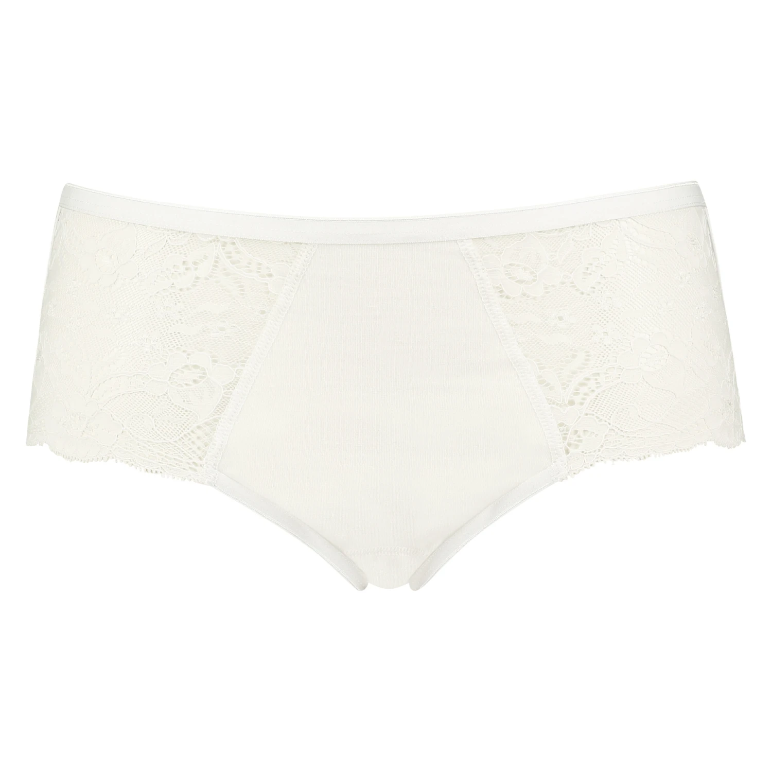 Ein in Baumwollqualität gefütterter Slip mit hoher Taille, was für eine bequeme Passform sorgt. Vorne mit Spitze besetzt. Leicht zu kombinieren mit jedem BH in derselben Farbe.